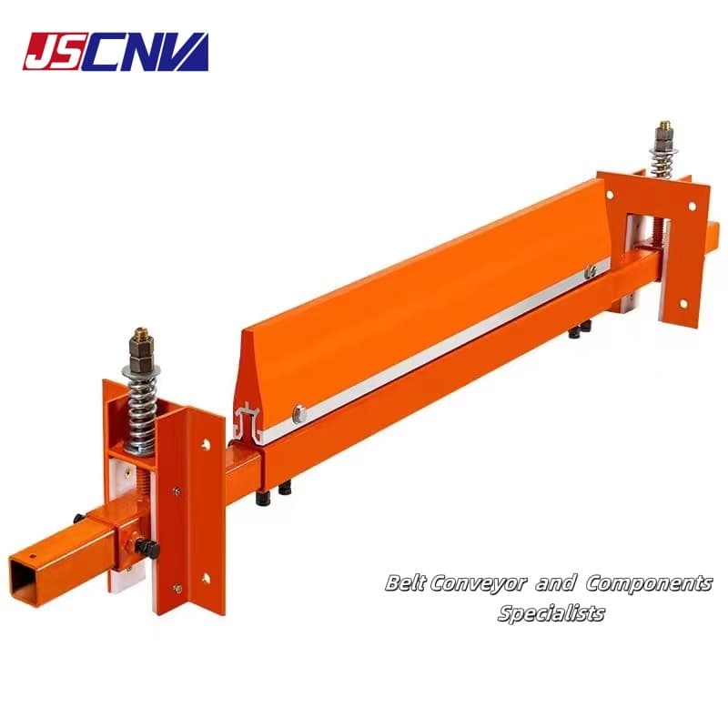 Le nettoyeur à une ligne est destiné au nettoyage de la courroie de retour. Il est principalement utilisé devant la poulie de courbure arrière et devant le lourd dispositif de tension vertical du convoyeur à bande. Il peut notamment être utilisé pour nettoyer la section vide du tapis roulant bidirectionnel. Il présente les caractéristiques de résistance aux acides et aux alcalis, ignifuge et antistatique, haute résistance à l'usure et n'endommage pas la courroie. La lame est fabriquée en polyuréthane haute résistance, la conception en forme de V assure la propreté de la courroie et la conception automatique par gravité assure une compensation automatique lorsque la lame s'use.